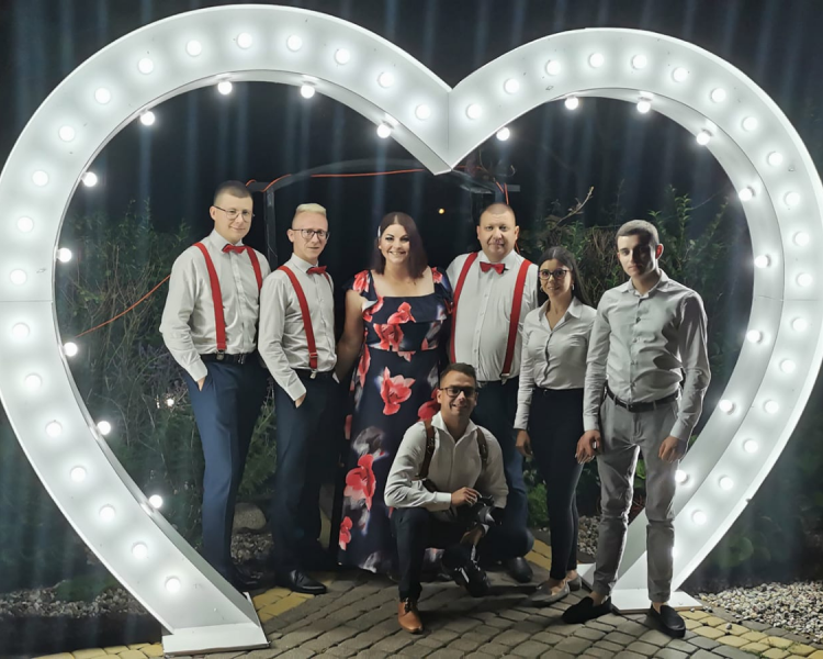 Przede wszystkim grupą znajomych którzy od lat realizują się w branży weselnej. Zespół składa się z 4 osób które przez cały wieczór dokładają wszelkich starań, aby to właśnie twoje wesele było tym niezapomnianym. Do swojej pracy podchodzimy bardzo profesjonalnie i każdą imprezę staramy się poprowadzić najlepiej jak potrafimy, a nasz wodzirej Artur w tym temacie nie ma sobie równych.