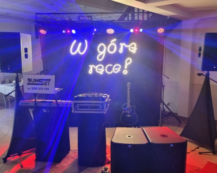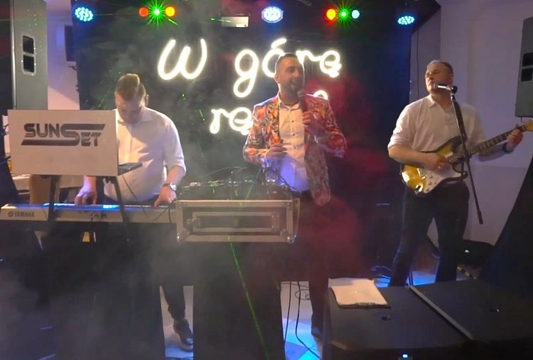 Zespół muzyczny SunSet + DJ Wodzirej to połączenie zalet klasycznego zespołu i Dj'a. Prowadzimy zarówno wesela katolickie jak i prawosławne. Zespół składa się z czterech osób, perkusja elektroniczna, gitara, akordeon i klawisze. Gramy muzykę polską rock, pop, disco - dance jak najbardziej zbliżoną do oryginałów, a także po białorusku czy ukraińsku. Na życzenie współpracujemy również z DJ mówiącym po Niemiecku. Większość zabawy prowadzi wodzirej - wspólne śpiewanie z podziałem na role, szybki kurs tańca, biesiada z akordeonem, familiada czy jaka to melodia? przy specjalnym stole z Guzikami jak w teleturnieju - to tylko niektóre z atrakcji, które przygotowaliśmy dla Państwa. Nasz DJ zagra wszystko to czego zespół nie jest w stanie zaśpiewać, m.in. repertuar obcojęzyczny, muzyka nowoczesna, elektroniczna, czy specjalne życzenia gości weselnych. Młodym Parom przygotowaliśmy nieco szaleństwa w naszym bloku muzyki nowoczesnej - rozdajemy wówczas gościom Ledowe pałeczki (ok. 150 szt.), Młodym wręczamy pistolet na CO2, zapraszamy ich na podwyższenie i odpalamy pokaz laserowy, DJ zadba o to abyśmy przez chwilę poczuli się jak na festiwalu z prawdziwego zdarzenia. Nasz akordeonista zadba o biesiadę, a wodzirej pomoże gościom śpiewać wszystkie znane szlagiery. Z dodatkowych atrakcji możemy Państwu zaoferować Ciężki Dym na pierwszy taniec lub moment pojawienia się tortu na sali. Posiadamy nowoczesne oświetlenie i nagłośnienie, napis Ledowy "W górę ręce!", który jest ustawiony centralnie za zespołem. Jesteśmy przygotowani na wesele każdej wielkości i w niemal każdych warunkach. Każdą uroczystość personalizujemy pod indywidualne wymagania Pary Młodej, dlatego na spotkaniu przed podpisaniem umowy wręczamy Państwu tzw. "Pytania do scenariusza". Na podstawie odpowiedzi będziemy mogli maksymalnie sprostać Waszym wymaganiom. Oprócz wesel zagramy niemal każdą imprezę - poprawiny, bankiety, andrzejki, bale karnawałowe, noc sylwestrowa, osiemnastki, połowinki, studniówki, koncerty plenerowe, w klubach itp.