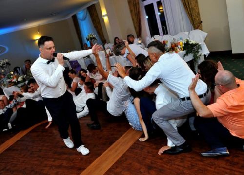 Wesela prowadzimy według wcześniej ustalonego scenariusza z uroczystym wprowadzeniem Młodej Pary na salę, przez powitanie, toasty weselne, pierwszy taniec i oczepiny mające na celu rozbawić a nie ośmieszyć dlatego też organizujemy tylko takie w których sami chcielibyśmy uczestniczyć.